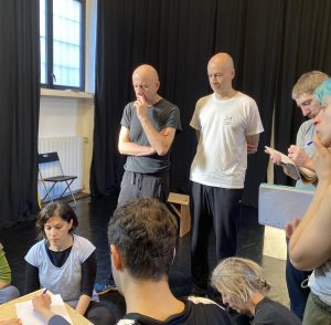 Dall’altra parte, in contemporanea al lavoro con il corpo, comincia il lavoro con il testo drammaturgico.
